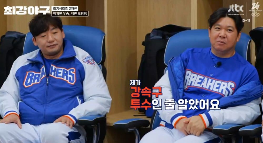 직관 경기로 진행된 1차전에서 오주원의 호투와 조용호 김태균 등 타자들의 맹타에 힘입어 브레이커스가 4대 2 기분 좋은 승리를 거둔 가운데 윤석민은 대뜸 “새로운 벌금 조항을 만들자”면서 “마운드에서 울면 벌금 100만 원이다. 이건 진짜 아닌 것 같다”며 이현승을 저격했다.